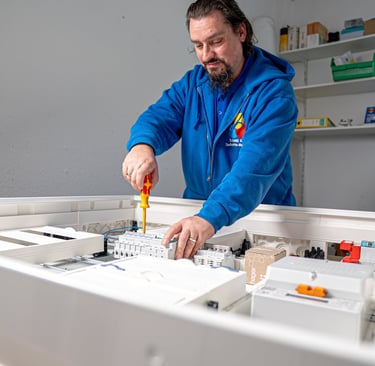 Hier lernst Du nicht, weil es auf dem Papier gut aussieht, sondern weil Du es brauchst. Ob E‒Mobility, Brandschutz, Fundamenterdung oder Hersteller‒Schulungen – wir bieten Dir gezielte Weiterbildungen, die Dich nach vorne bringen. Viele bei uns haben als Geselle angefangen und den Meister gemacht. Wenn Du Bock hast, Dich weiterzuentwickeln, unterstützen wir Dich dabei.